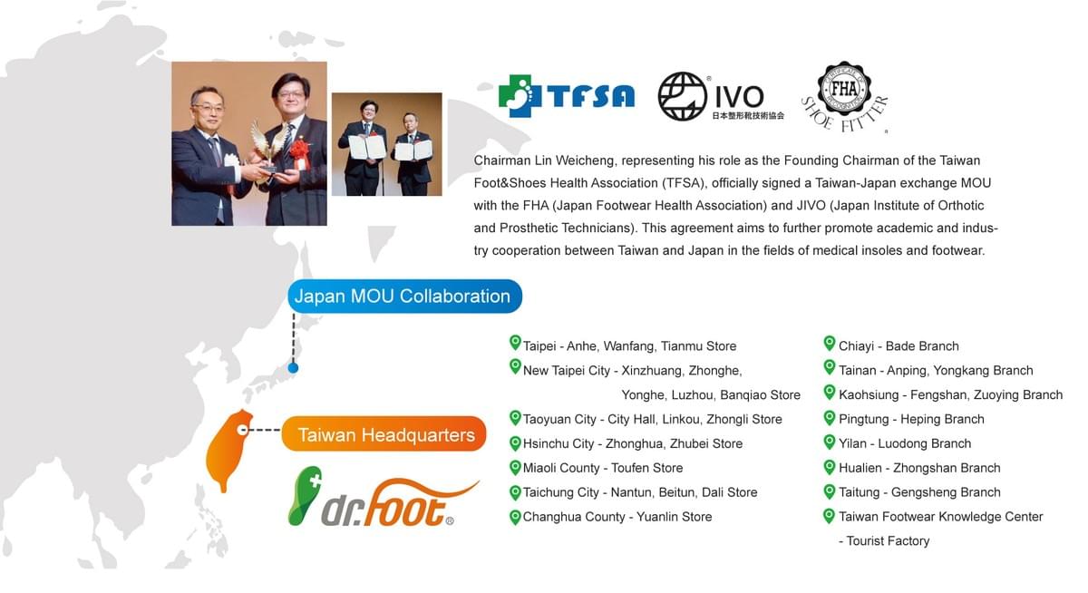 Our History & Expertise Established in 2002, Dr. Foot has grown to 28 locations across Taiwan. Our team is composed of licensed physical therapists and certified pedorthists dedicated to relieving pain and restoring mobility. Utilizing our proprietary, patented foot-scanning technology, we provide precision-tailored shoes and insoles for every customer.
